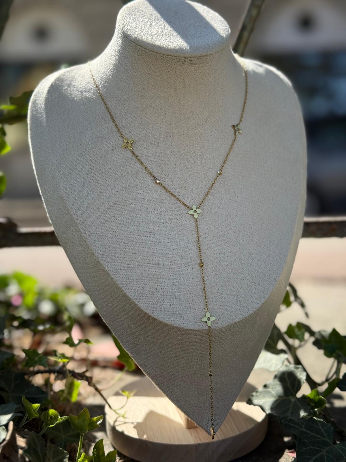 🌟 Collier Femme Acier Inoxydable Doré – Chaîne Y Élégante avec Pendentifs Fleur Trèfle à 4 Feuilles